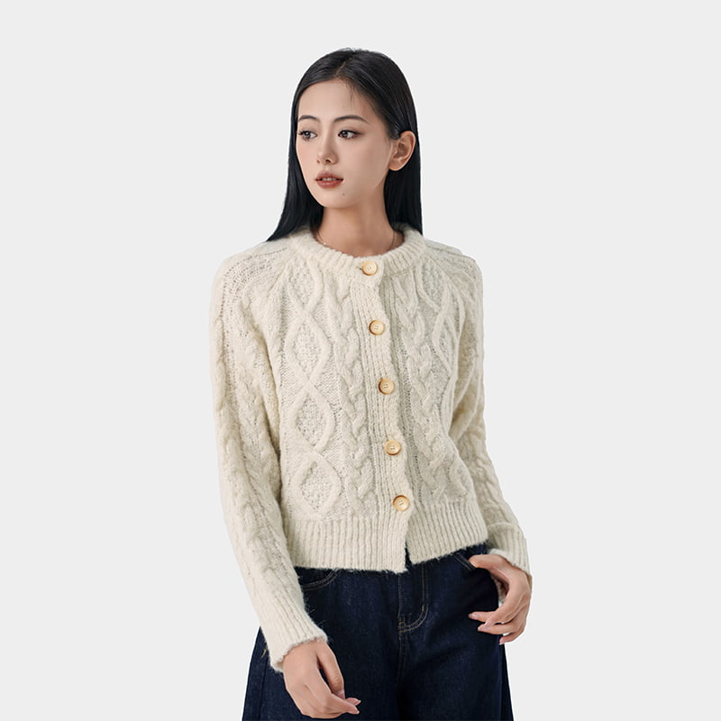 Tosaigh trí oiriúnacht ag na guaillí agus an torso a mheas. Suíonn seam ghualainn dea-fheistithe ag an ghualainn nádúrtha nó díreach os a chionn. Le haghaidh torsos níos caol, caomhnaíonn cardigan beagán cropped nó feistithe cruth; le haghaidh torsos curvier, seachnaíonn cardigan le múnlú bog nó pointe ceangail amháin mórchóir a chur leis. Seachain cniotáil ró-bhosca ar fhrámaí níos lú agus seachain cniotáil an-daingean ar réimsí nach fearr leat a ghéarú.