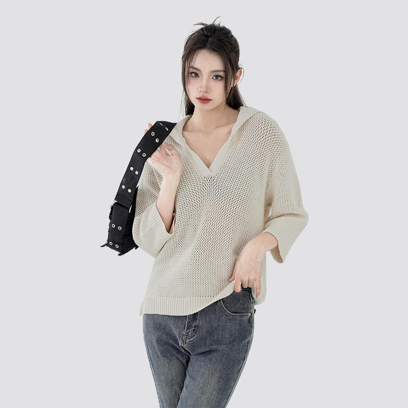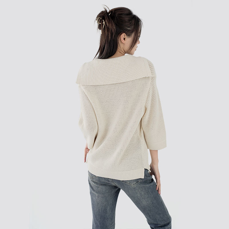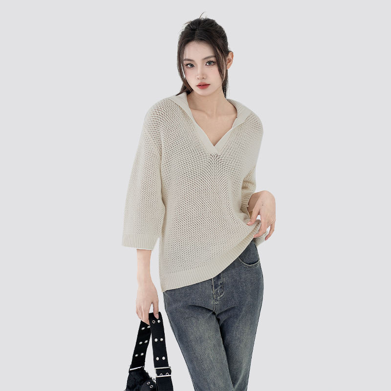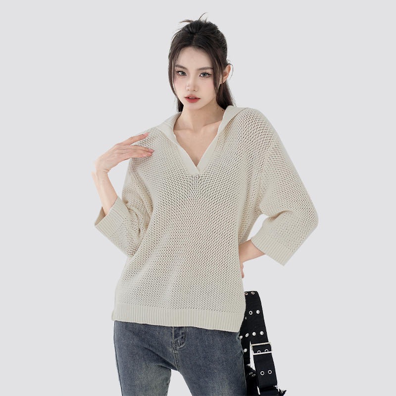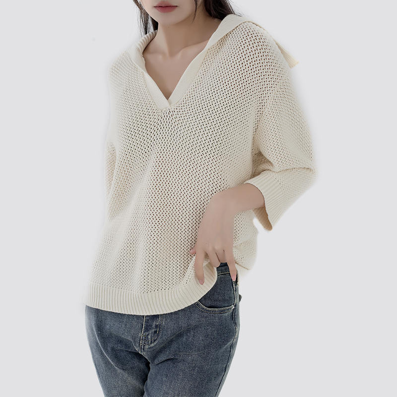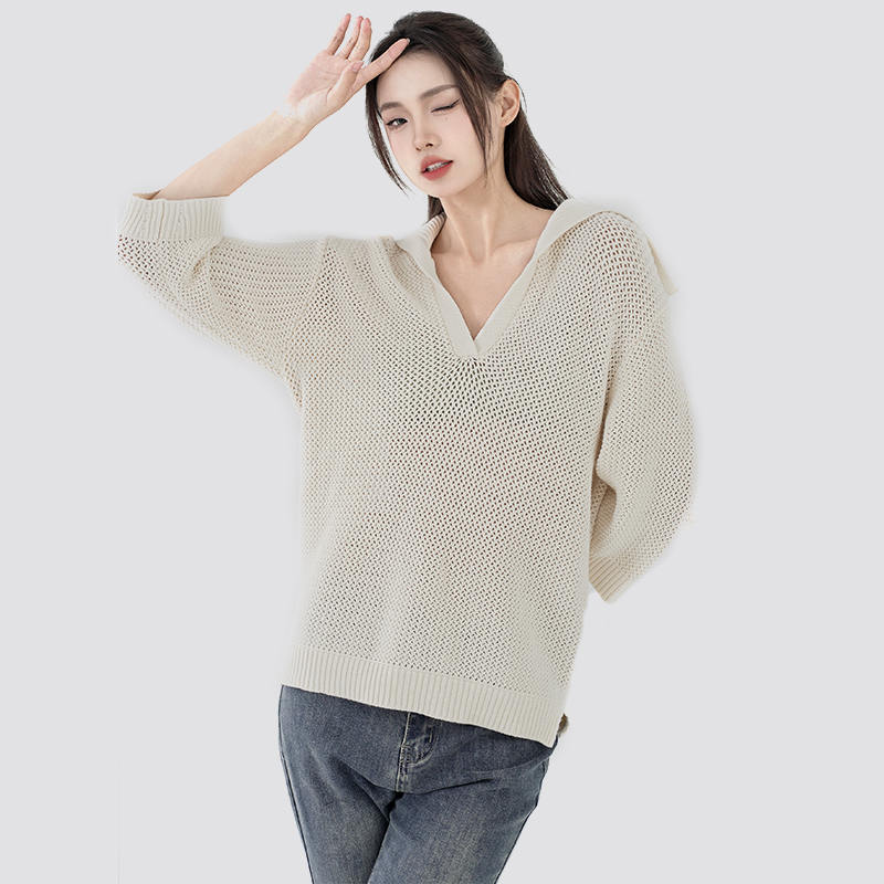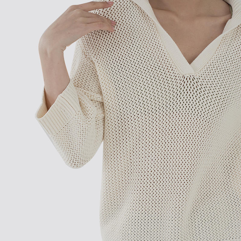 Táirgeann an chuideachta geansaithe cniotáilte na bpáistí, na bhfear agus na mban go príomha. Geansaí Cochaill Mhuineál na mBan V Clúdach Cróise Mogall Cróise Suas Sleamhnán Muinchille Fada company in China.