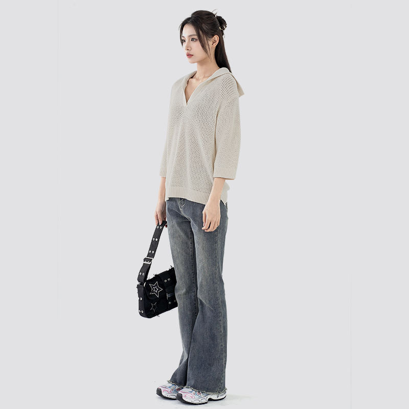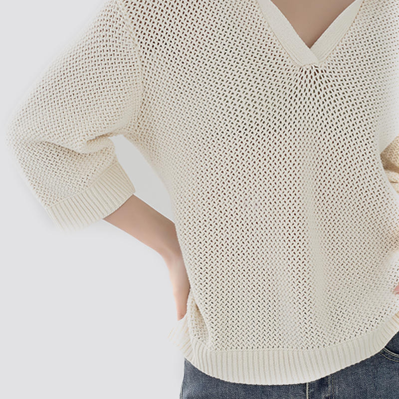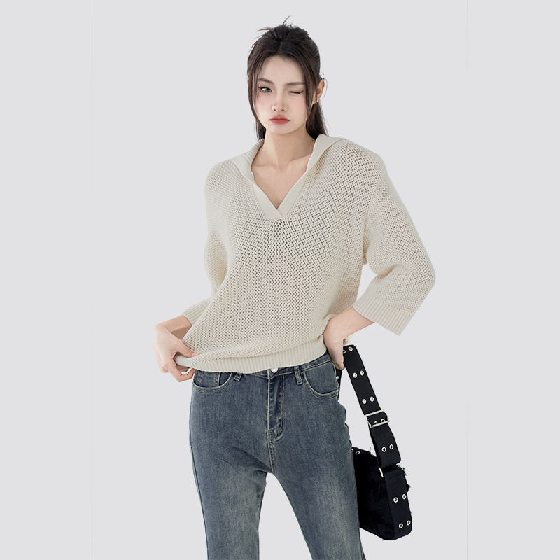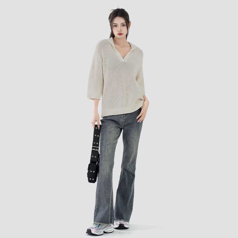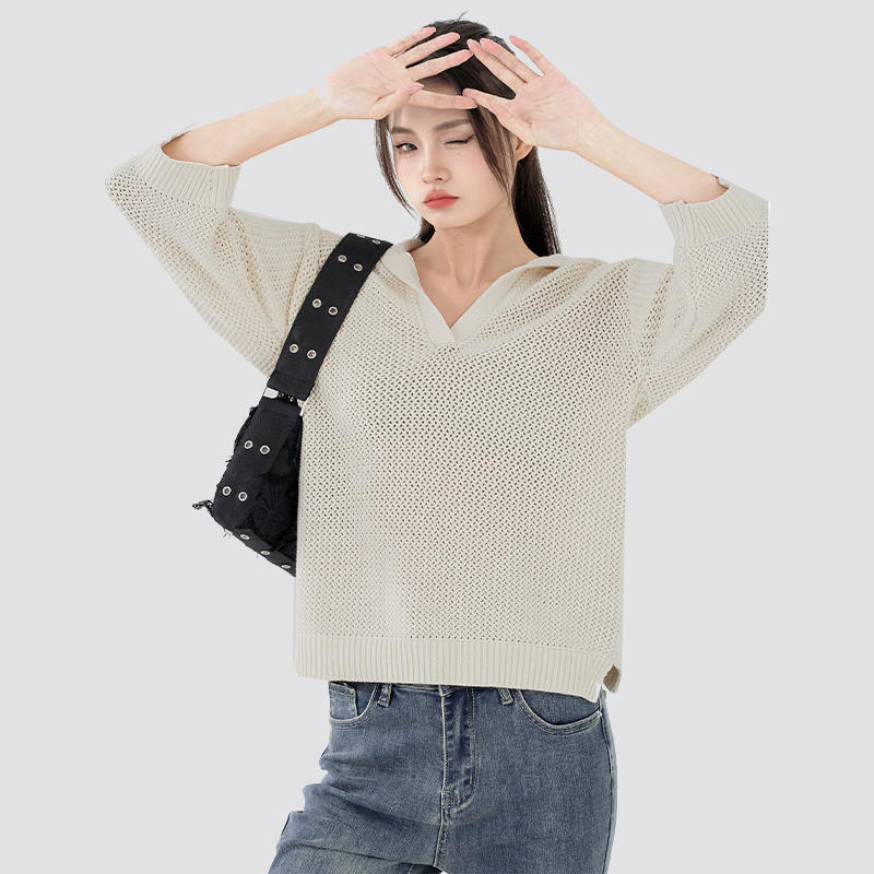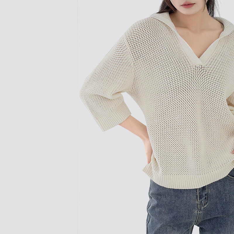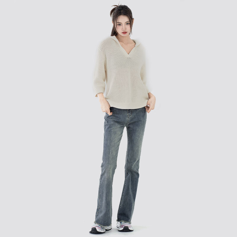 Táirgeann an chuideachta geansaithe cniotáilte na bpáistí, na bhfear agus na mban go príomha. Geansaí Cochaill Mhuineál na mBan V Clúdach Cróise Mogall Cróise Suas Sleamhnán Muinchille Fada company in China.
