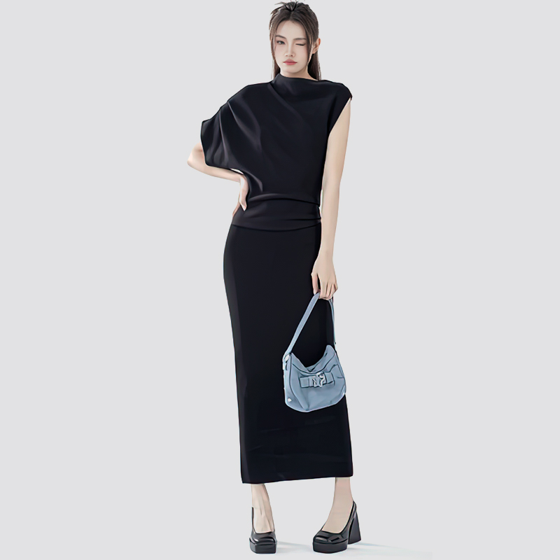Déantar ruching ar an mbanda waist agus na sleeves, rud a fhágann go bhfuil cuma tanaí agus stylish ar an duine féin.