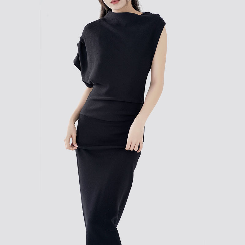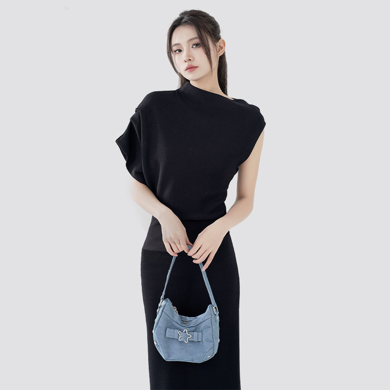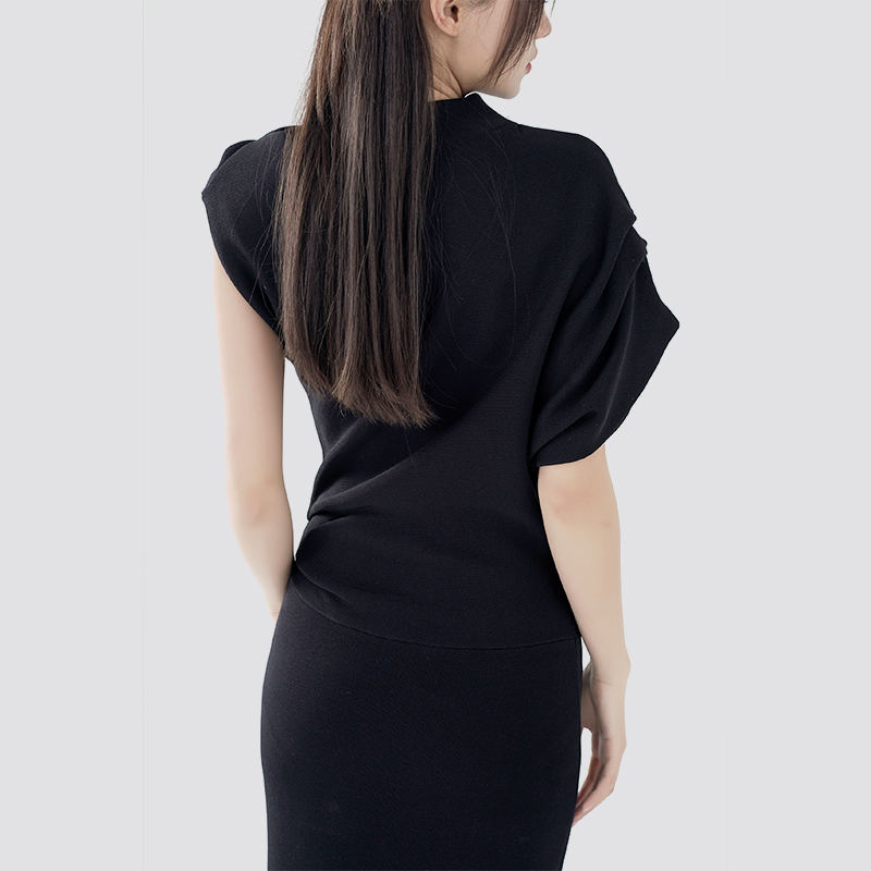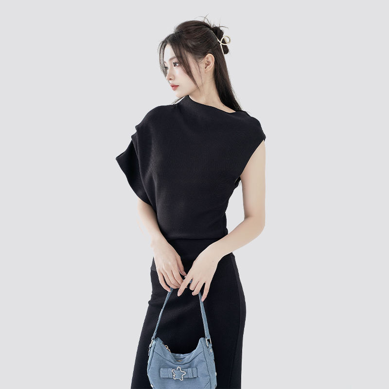 Tá na sleeves neamhrialta ar an dá thaobh, le sleeves gan sleeves agus gearr chun breathnú slouchy agus ócáideach.